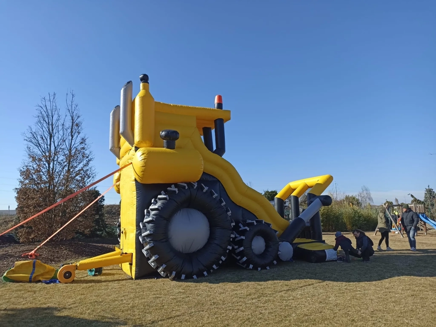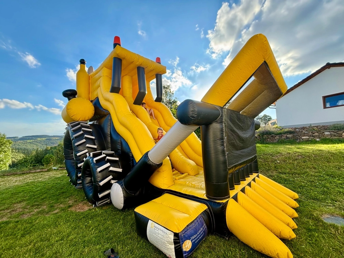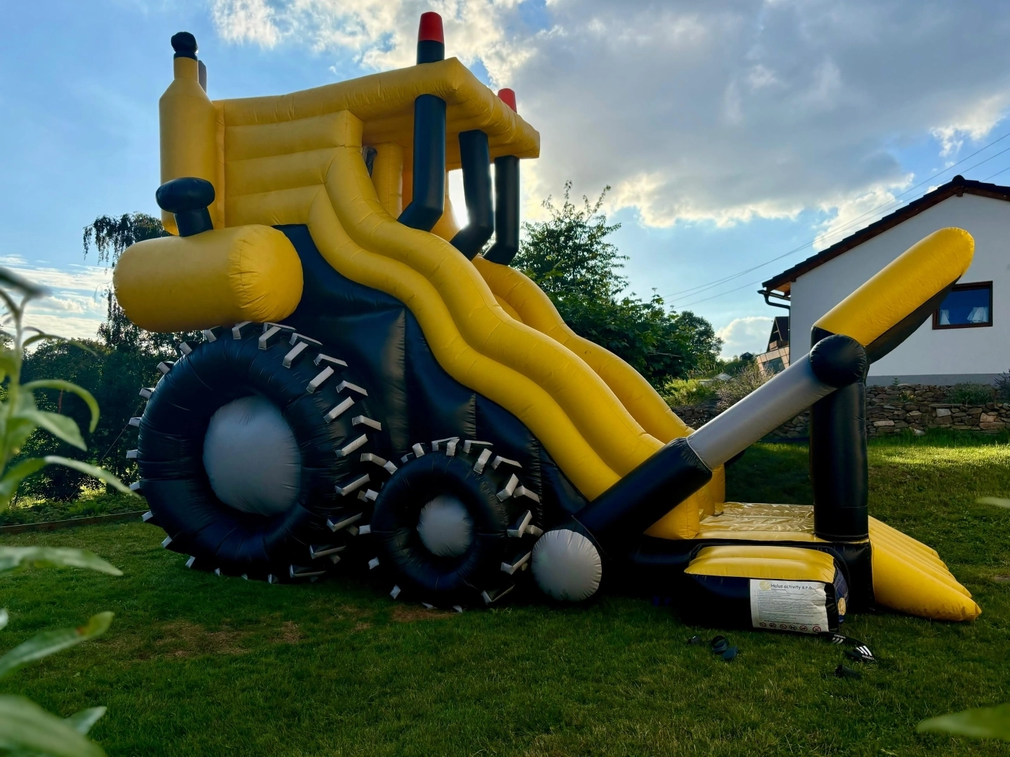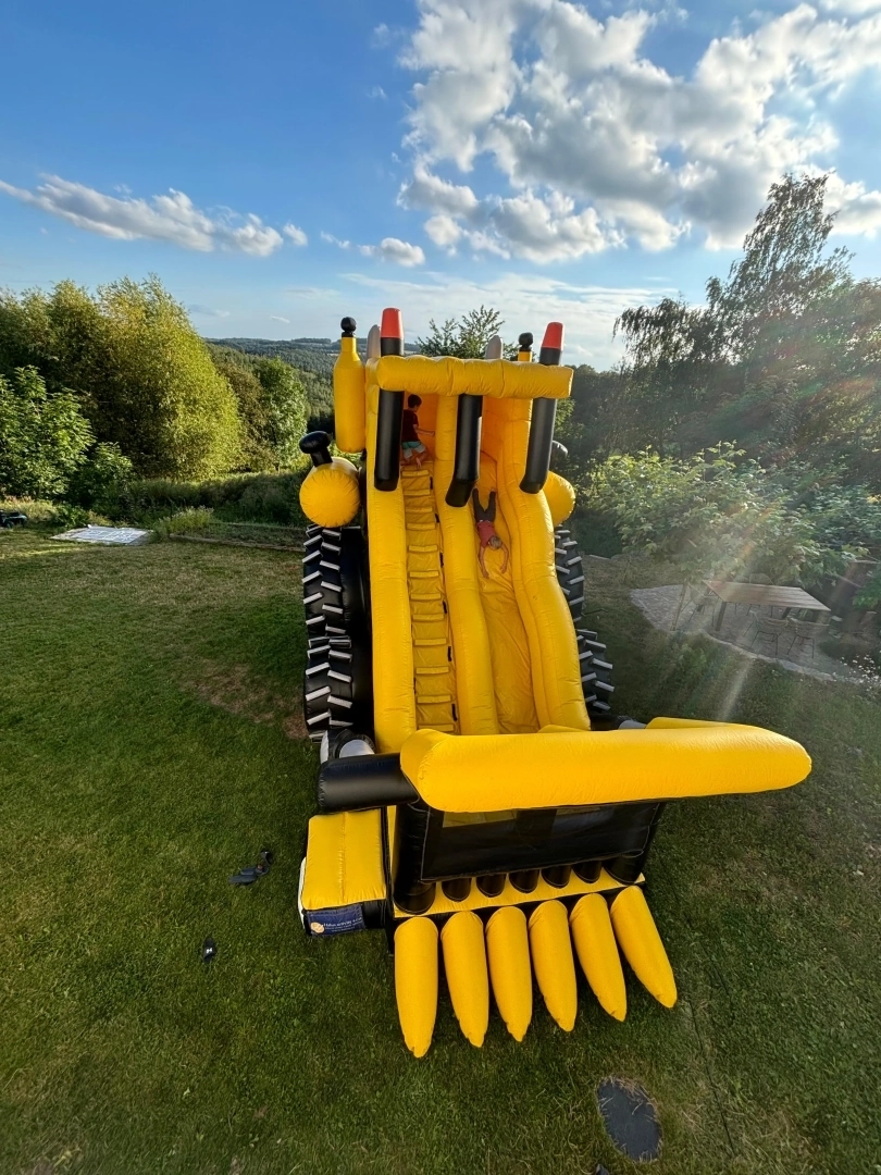 Máte doma malého bagristu nebo milovníka těžké techniky? Náš nafukovací hrad Bagr není jen obyčejná skákačka. Je to dominantní atrakce, která díky své žluto-černé barvě a propracovaným detailům (jako je lžíce, pásy a komíny) promění každou zahradu v centrum dobrodružství. Vysoká skluzavka a design, který děti milují.