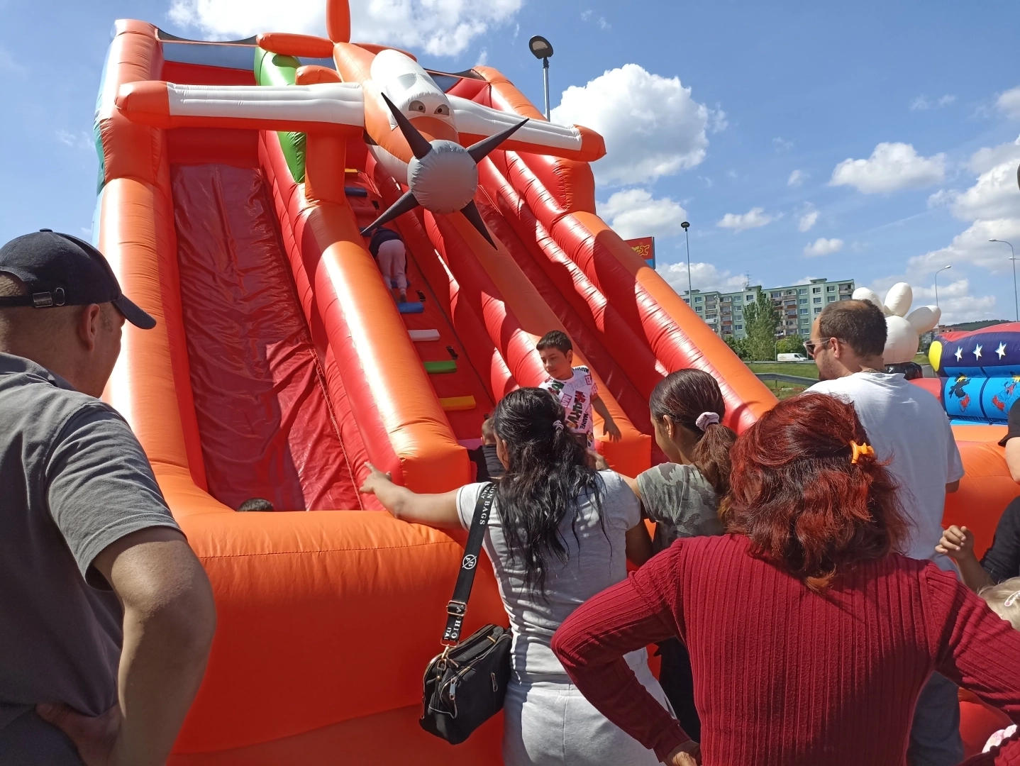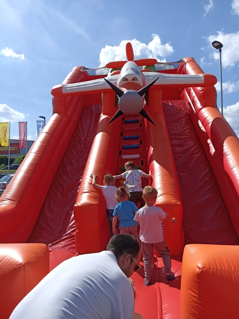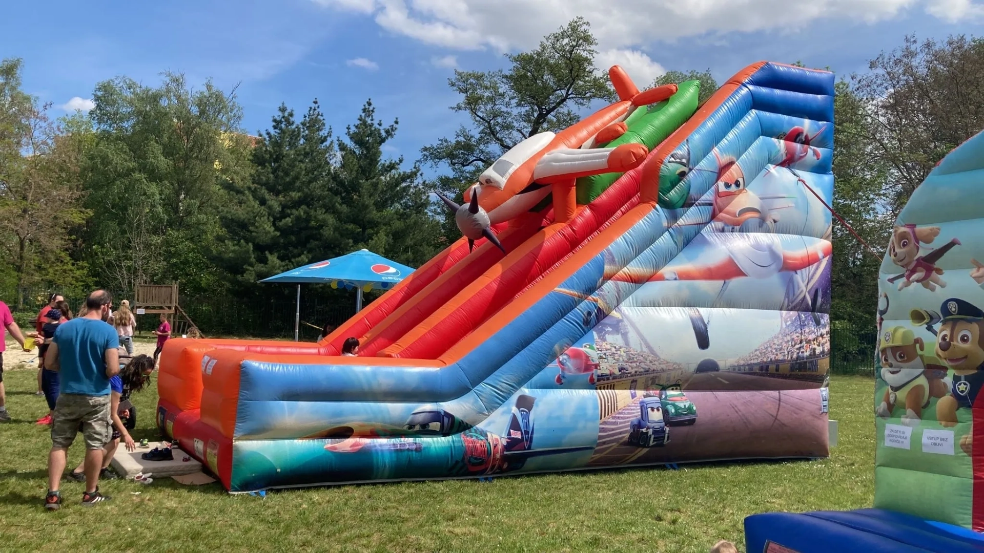 Prohlédněte si galerii zábavné atrakce Letadlo – tato obří skluzavka s motivem letadla „Prášek“ z oblíbené pohádky bude dominantou každé oslavy.